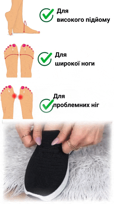 - Мають еластичну конструкцію, що дає змогу легко взути та зняти взуття, зменшуючи напруження на м'язи ніг.