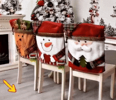 Набір новорічних чохлів на стільці, святкові прикраси, різдвяний декор для спинки стільця Санта, Сніговик, Олень, 3 шт